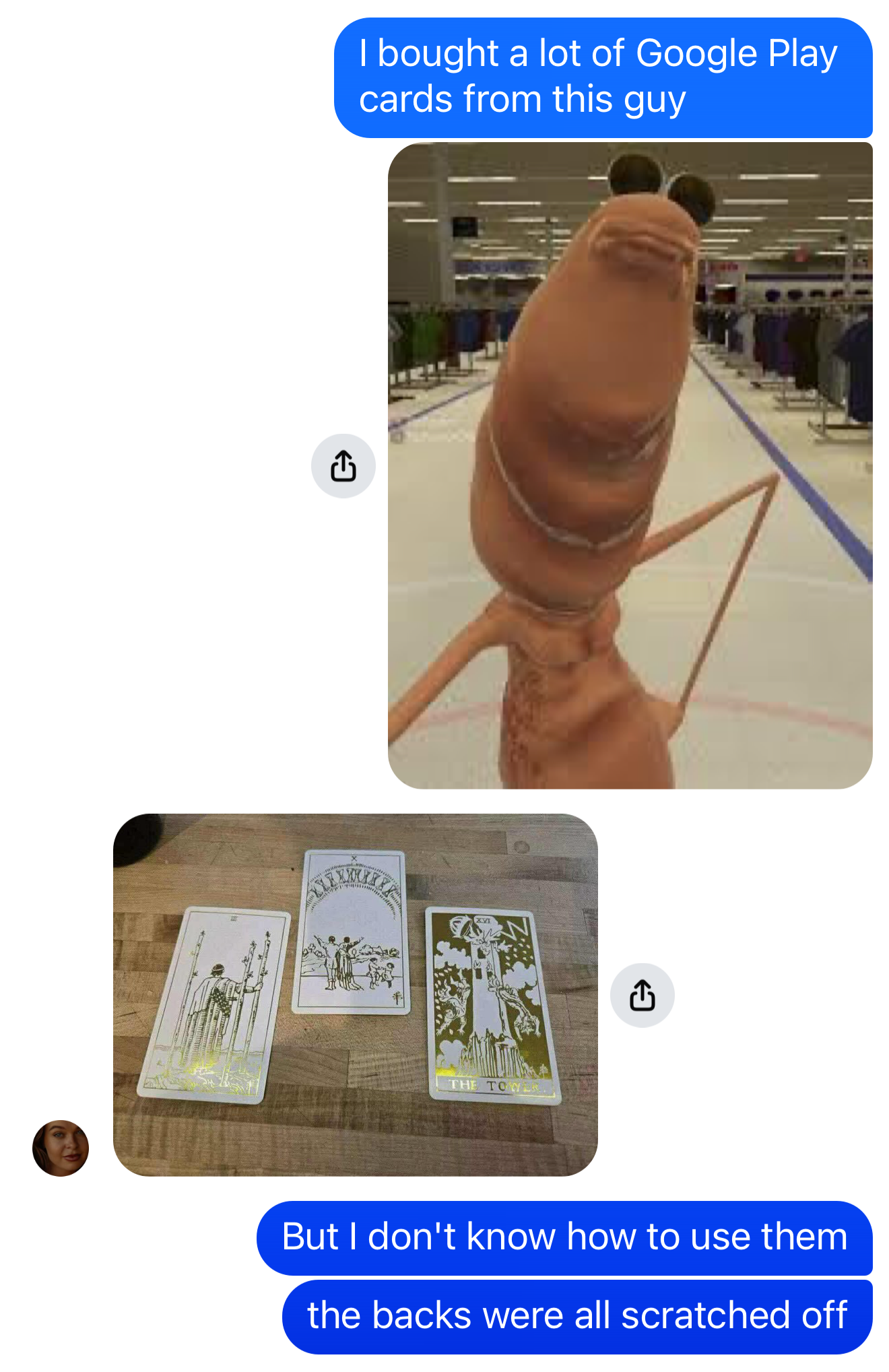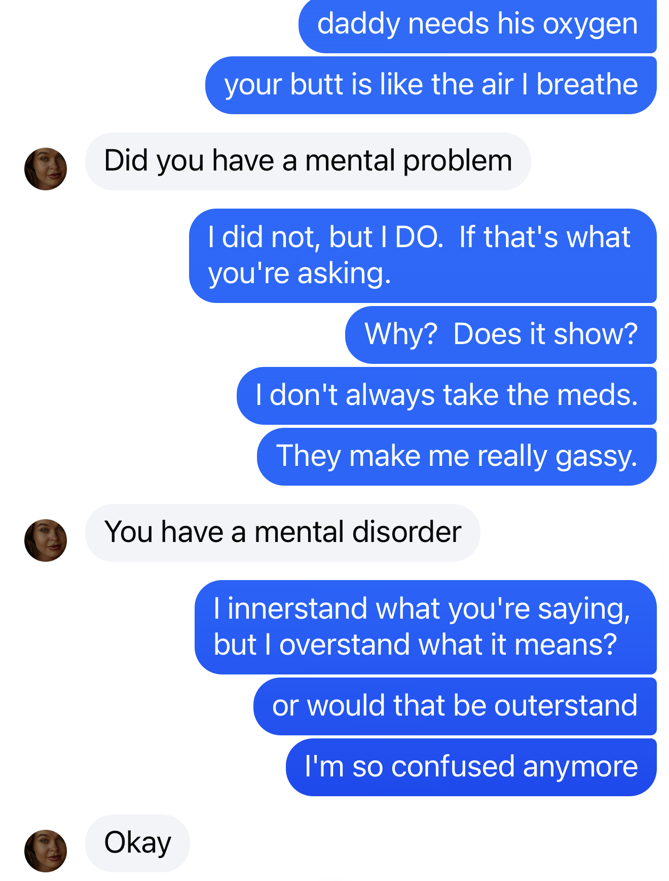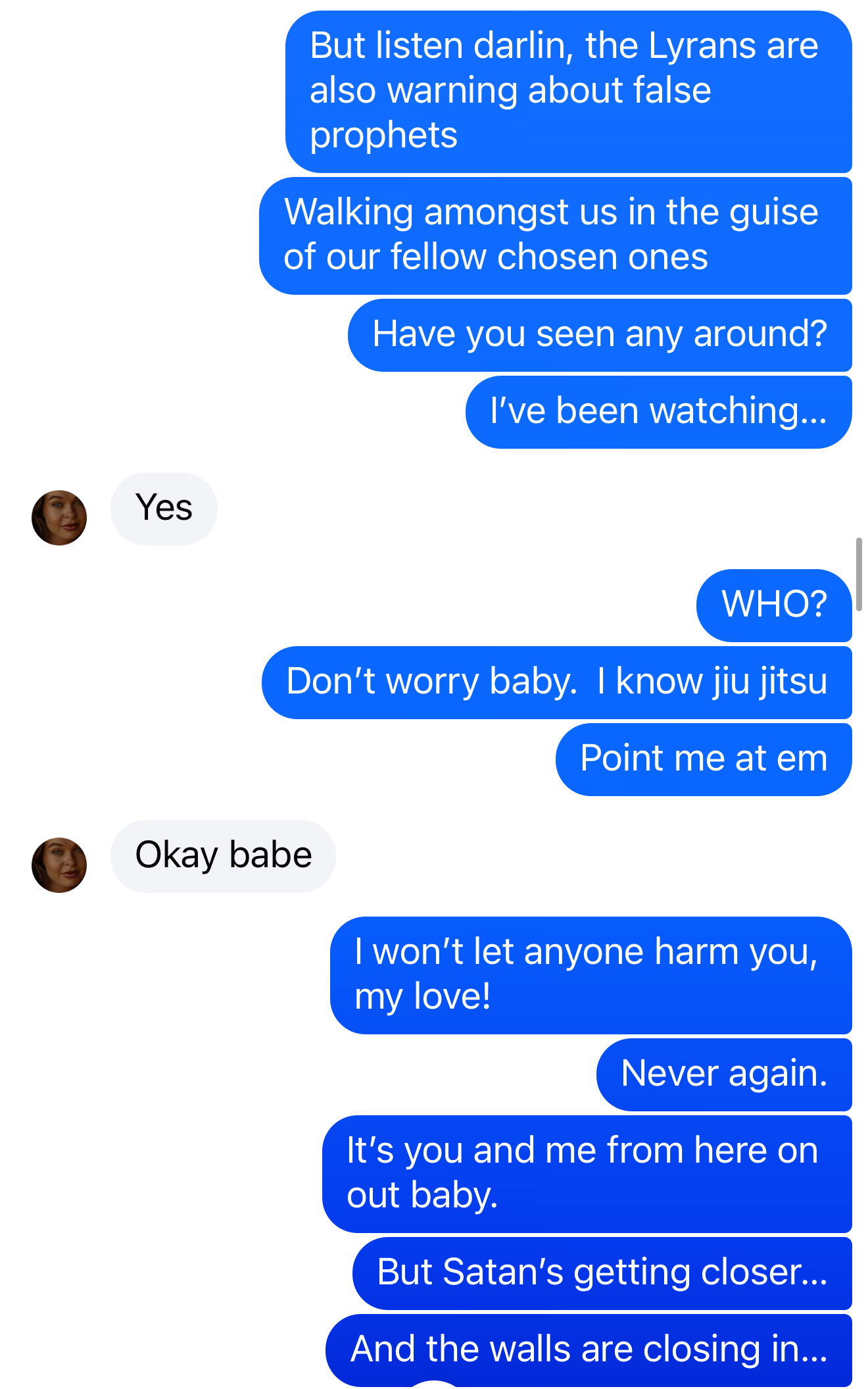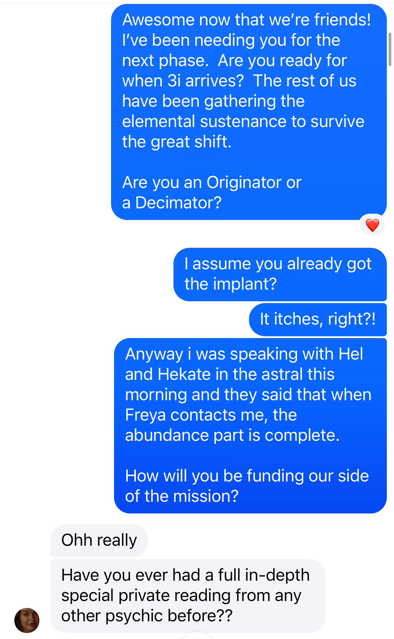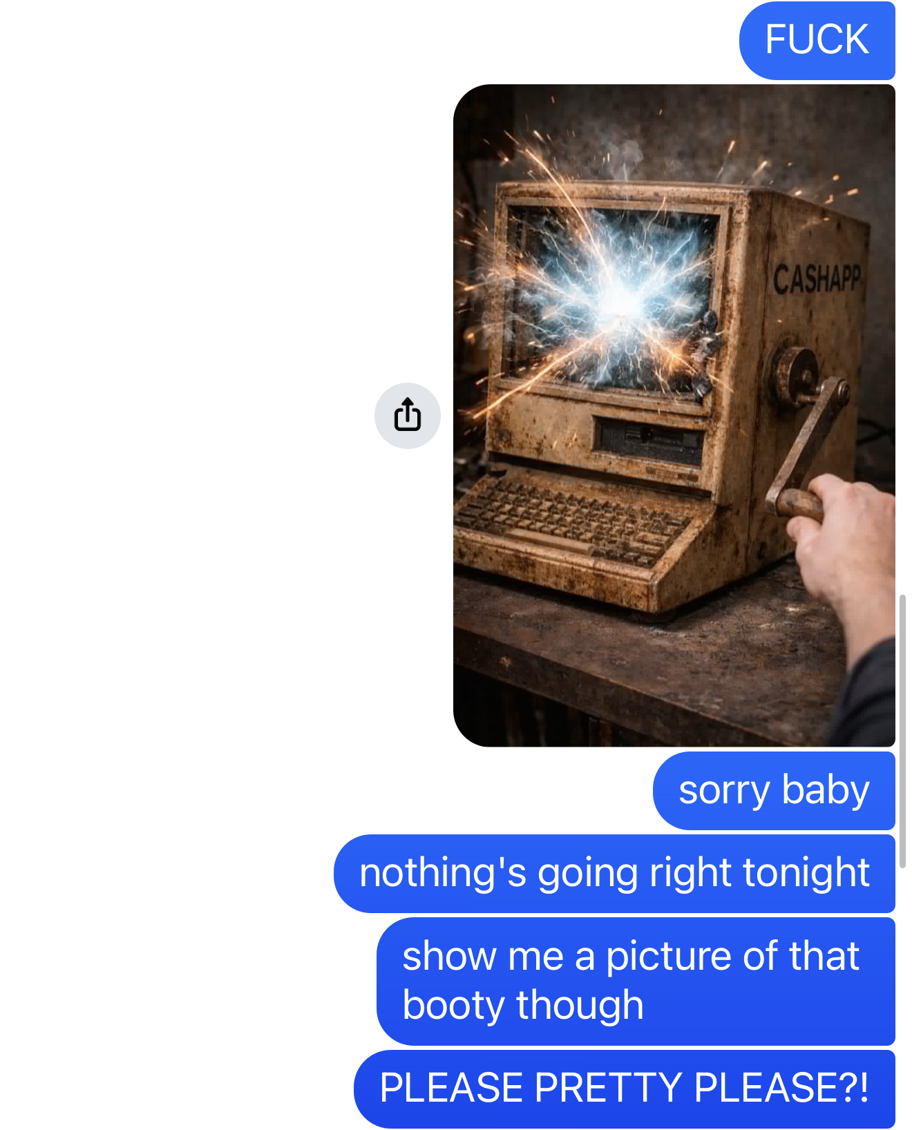 The Freya Ray Incident Before we begin, this is the only REAL image that I shared with the scammer. This was part of my Youtube 2025 Round-up, and I was tickled pink by it.Every other image shared was generated while we chatted using ChatGPT.(except for Devil Jesus. That’s mine)Yes ChatGPT. It still has the best image creator. FOR NOW. (FUCK YOU SAM ALTMAN!Buuuut… credit where it’s due…) (That Video) (That Video) (THAT AUDIO) At this point, I clicked on chat options and REPORTED the chat.Try to tell me this account isn’t a scam NOW, Facebook.A’Thank You.